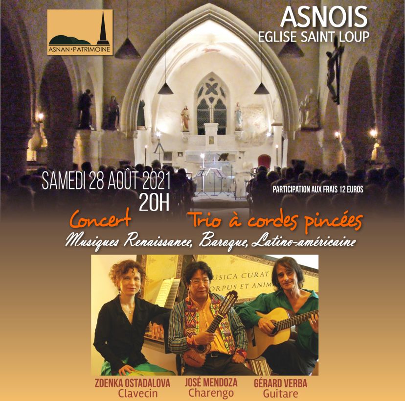 Un second évènement à ne pas rater, le concert, organisé par ASNAN PATRIMOINE, donné en l'église Saint Loup d'ASNOIS, le dimanche 28 août à 20H, dans un cadre magnifique à l'acoustique exceptionnelle.